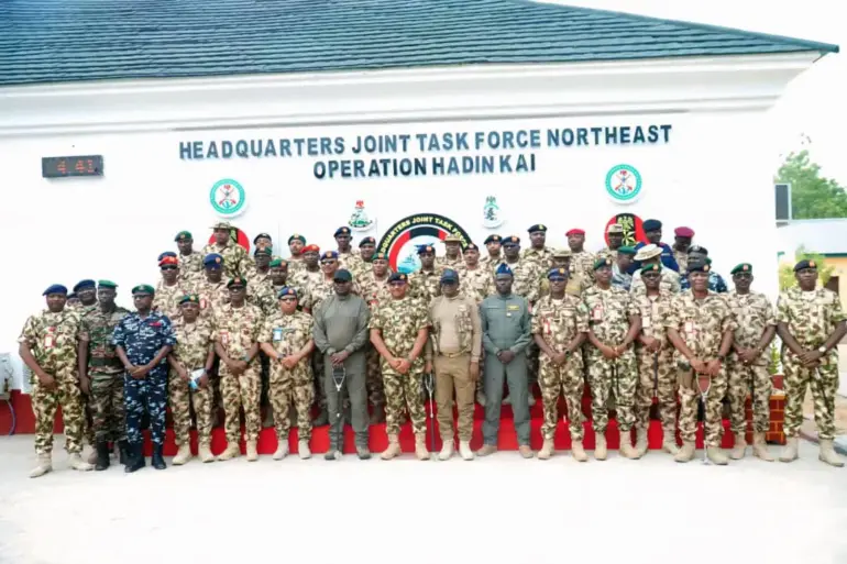 The Minister of Defence, Major General Christopher Musa (retd.), and the Minister of State for Defence, Bello Matawalle, have visited the Headquarters Theatre Command of Joint Task Force (North-East), Operation...
