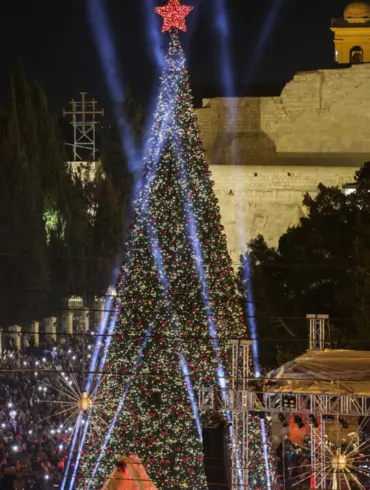 Bethlehem Christmas tree lit up for first time since Gaza war
